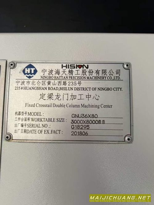 新定海天GNU3680重型龙门加工中心,工作台3米8米,门.